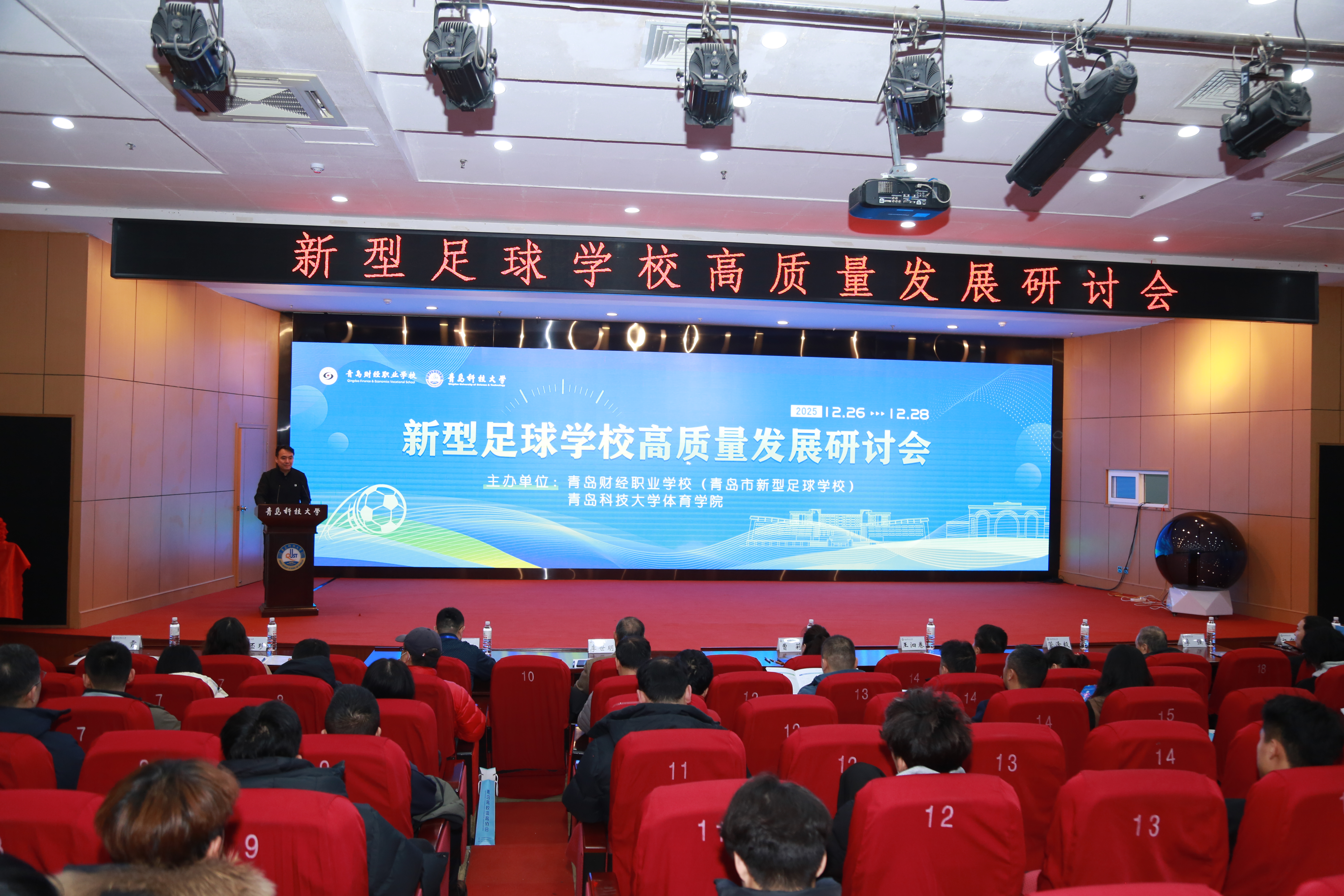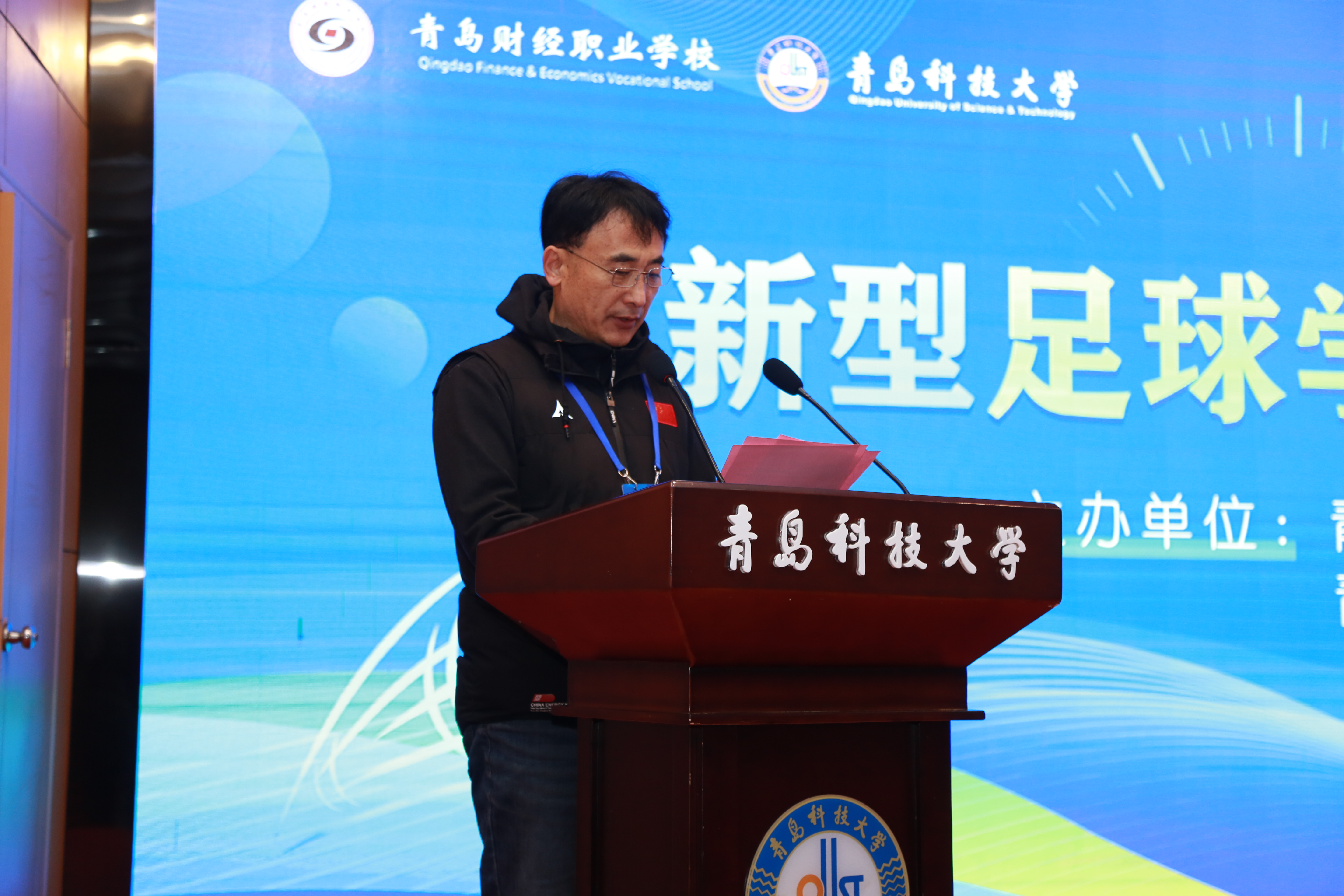 12月27日,由青岛财经职业学校(青岛市新型足球学校)、青岛科技大学体育学院主办,青岛市教育局、青岛校园足球协会、青岛高校体协指导的新型足球学校高质量发展研讨会在崂山校区第三报告厅召开。青岛市教育局体卫艺处二级调研员王泗卷,青岛校园足球协会会长管泽毅,青岛财经职业学校副校长(主持工作)刘杰,青岛科技大学体育学院党委书记杨中华及企业代表,两校师生近百人参加了本次研讨会。会议由学校体育学院院长张霄主持。
