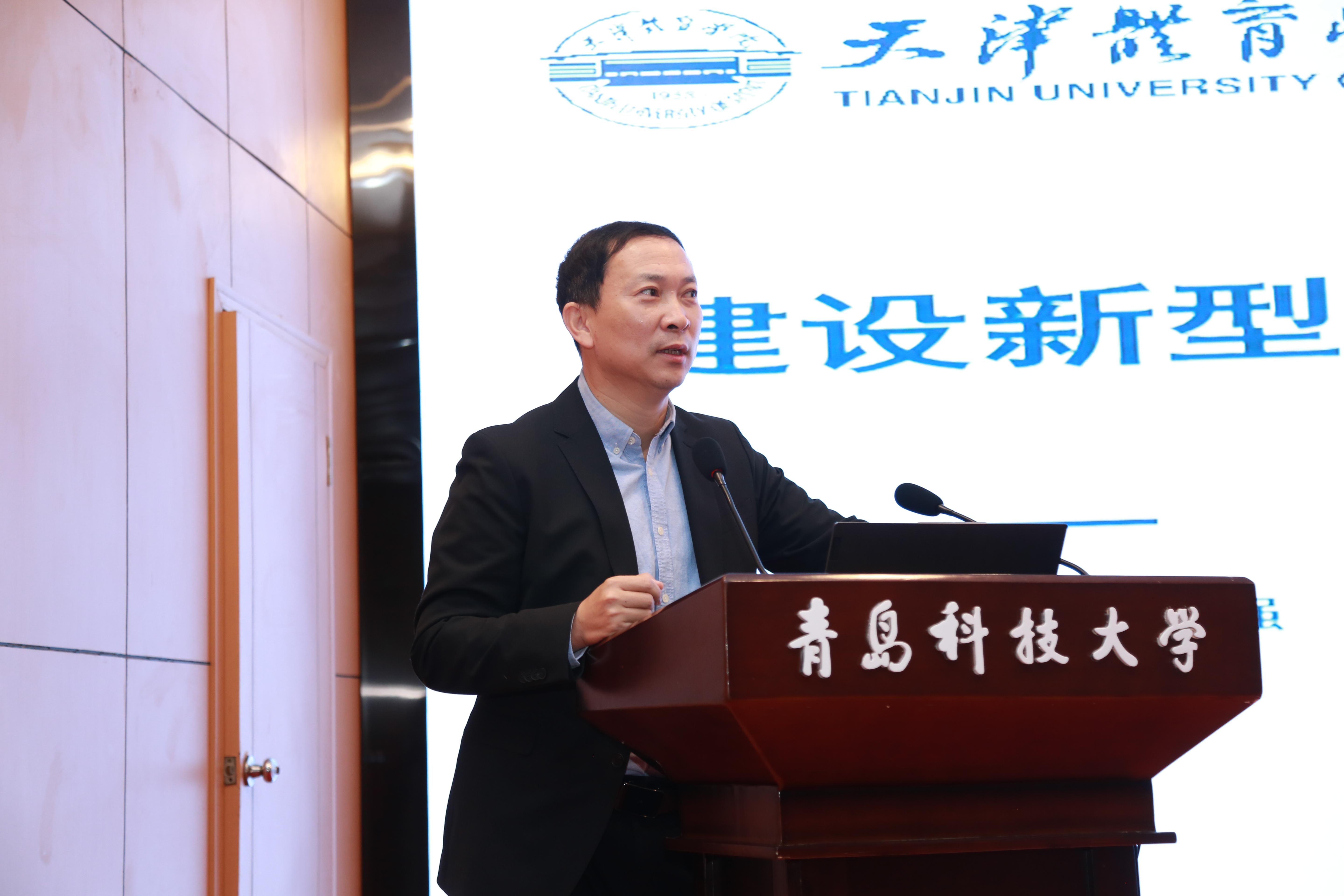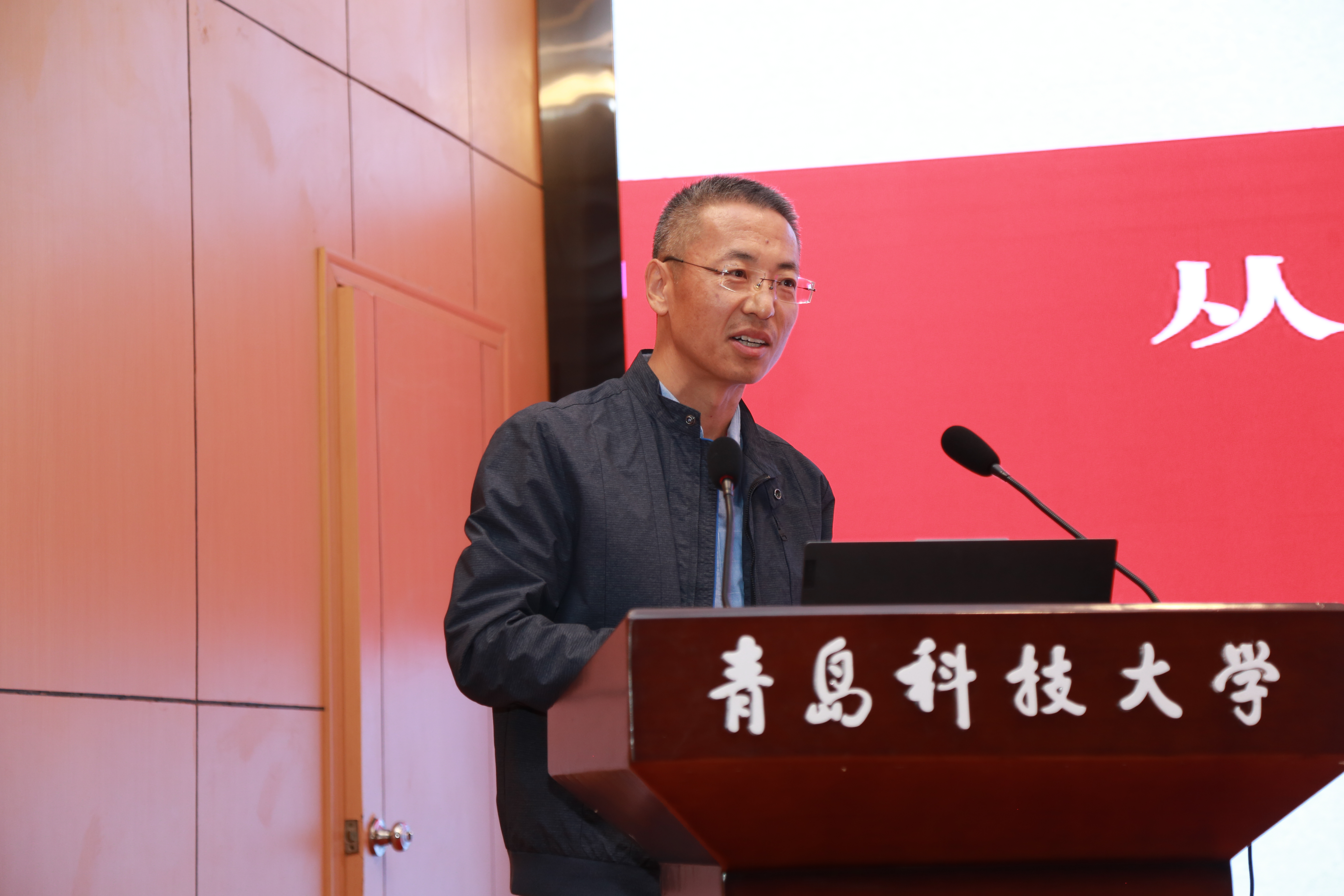 杨中华代表学校为研讨会致辞,他讲到,青岛科技大学高度重视体育工作发展且具有浓厚的足球特色底蕴。多年来,学校高举体育综合改革大旗,发挥“三平台五结合一体化”运行机制,强化“五育并举”,持续擦亮“爱体育 兴科大”品牌,在体育综合育人方面取得了较大成绩。本次将青岛财经职业学校设为学校实习实践基地,双方共建足球协同育人平台,为学校进一步发展足球运动项目,丰富体育运动氛围注入新的活力。