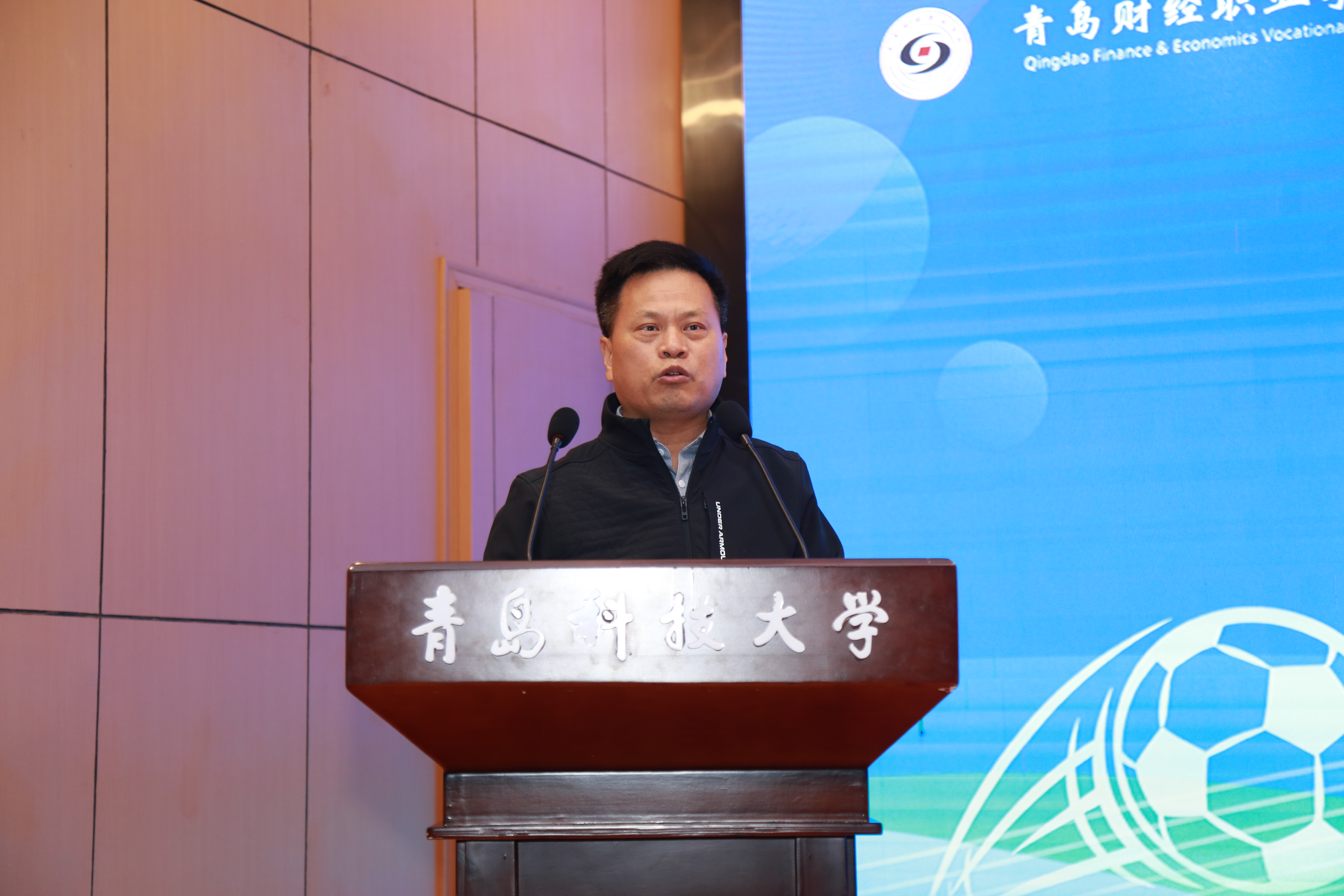 王泗卷代表青岛市教育局对研讨会的召开表示祝贺,他在讲话中指出,青岛市作为全国首批青少年校园足球改革试验区,承担三项国家级改革试点任务,拥有全国教育系统唯一新型足球学校试点,国家级足球特色学校达296所,校园足球成绩斐然。青岛科技大学和青岛财经学院的平台共建有助于体教融合深度推进,进一步形成“学训赛”一体化模式,创新校校合作机制,完善“高校-俱乐部-体育产业公司”共享体系,为青岛校园足球的发展再创佳绩。